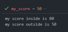 함수 안에서 my_score라는 local 변수를 또다시 만들어서 80이라는 값을 할당했다.
